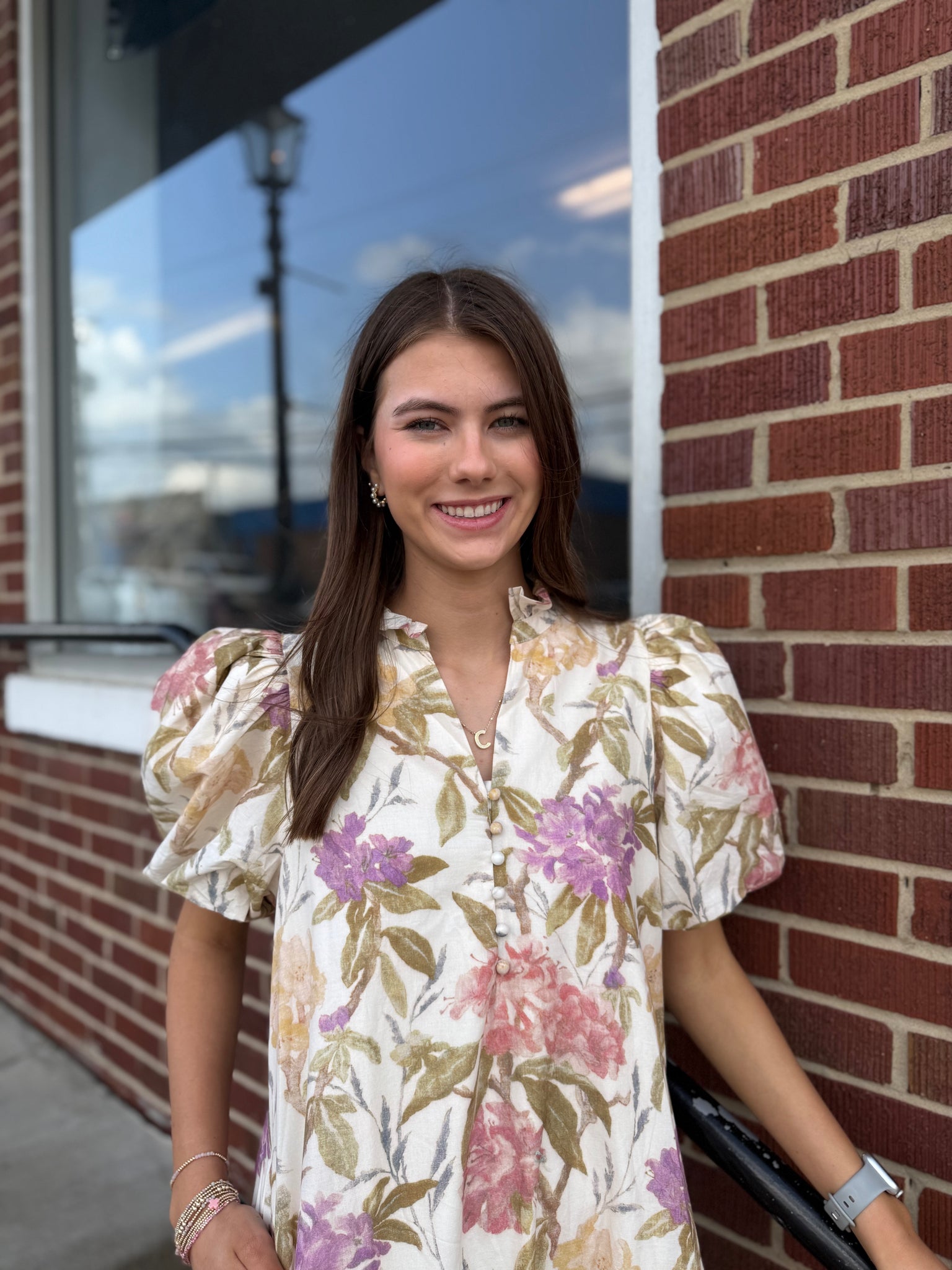 Twirl through your day in this charming Floral Fields Maxi! Featuring adorable puff sleeves and a playful ruffle hem, this straight-cut dress brings effortless elegance with a fun twist. Practical button details and hidden pockets keep you looking polished while staying comfortable. Fully lined for a smooth, flattering silhouette that's ready for any occasion. True to size, Claire is wearing a small.